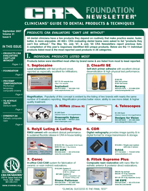 • All 400+ CRA evaluating dental teams were asked to list “products they can’t live without”