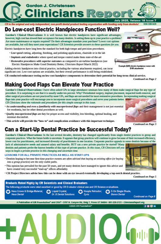 Low-cost Electric Handpieces ◊ Good Flaps ◊ Start-Up Dental Practice