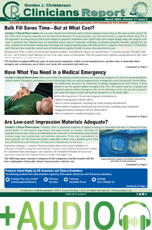Bulk Fill ◊ Medical Emergencies ◊ Impression Materials