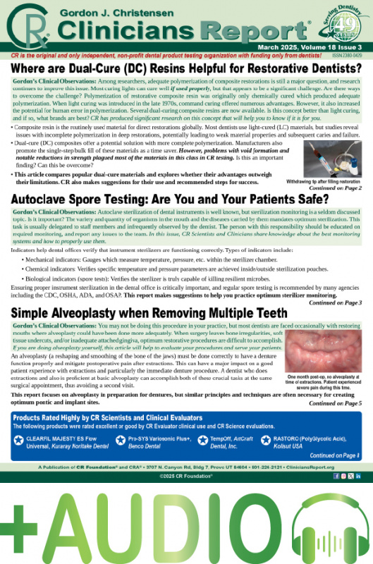 This article compares popular dual-cure materials and explores whether their advantages outweigh their limitations. CR also makes suggestions for their use and recommended steps for success.