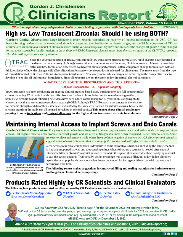 • Zirconia Clinical Service Longevity vs. Translucence