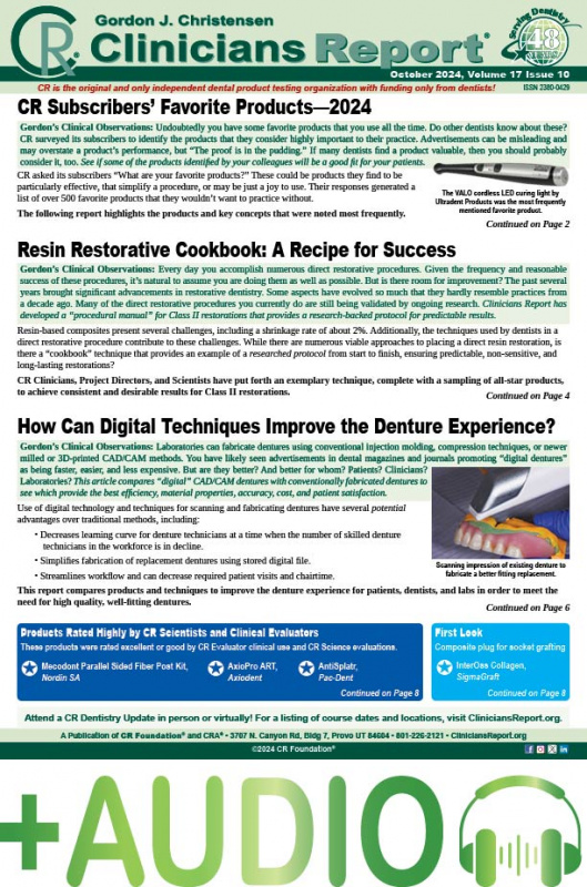This report compares products and techniques to improve the denture experience for patients, dentists, and labs in order to meet the need for high quality, well-fitting dentures.