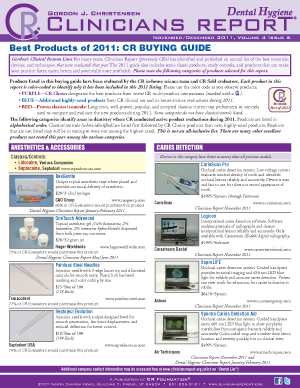 CR Buying Guide: Dental Hygiene Clinicians Report November/December 2011, Volume 4 Issue 6