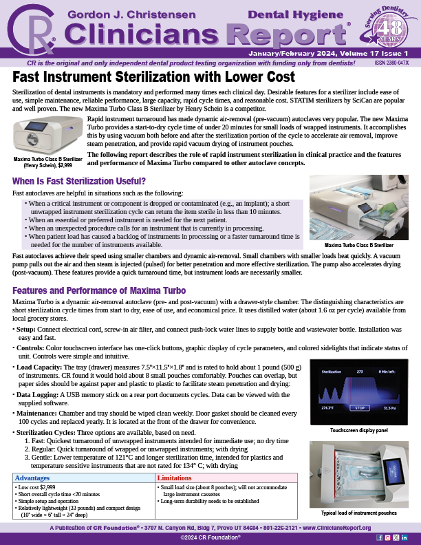 Dental Hygiene Clinicians Report January/February 2024, Volume 17 Issue 1