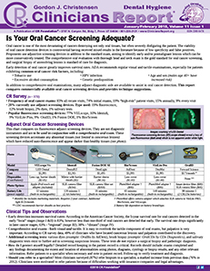 Dental Hygiene Clinicians Report January/February 2018, Volume 11 Issue 1