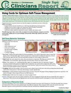 The following report shows state-of-the-art gingival retraction techniques, compares retraction cord brands, explains the two-cord technique, and provides clinical tips related to soft tissue management.