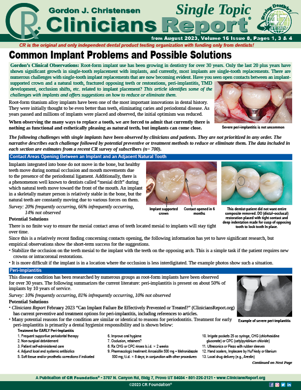 Common Implant Problems and Possible Solutions