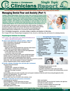 This article discusses psychological management of patient fears—prevention, etiology, and recognition, with abundance of clinical tips.