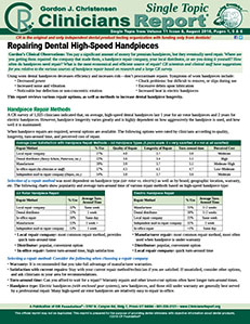 This report reviews various repair options, as well as methods to increase dental handpiece longevity.