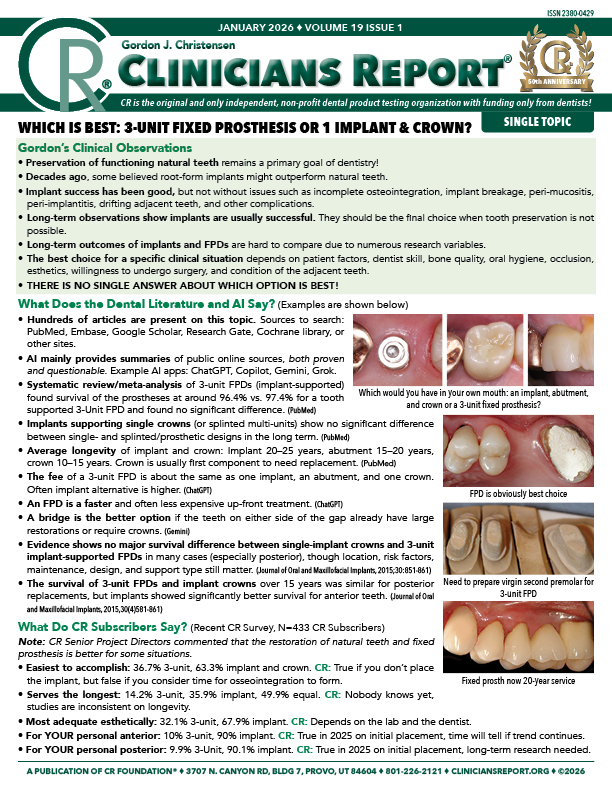 Which is Best: 3-Unit Fixed Prosthesis or 1 Implant & Crown?