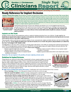 This report from CR’s Scientists and Clinical Practitioners is a ready reference of the essential skills needed to handle the occlusion of common implant prostheses.