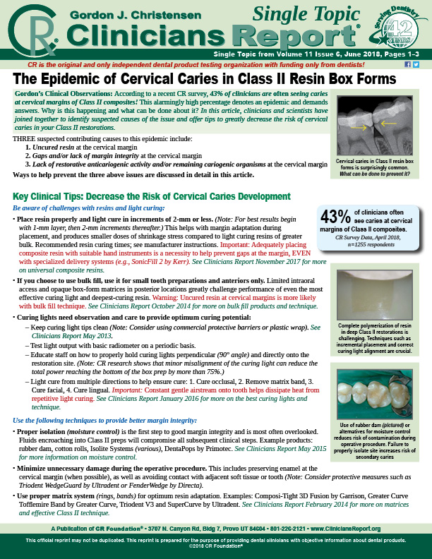 The Epidemic of Cervical Caries in Class II Resin Box Forms